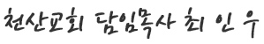 저는 천산교회를 담임하고 있는 최인우 목사입니다.